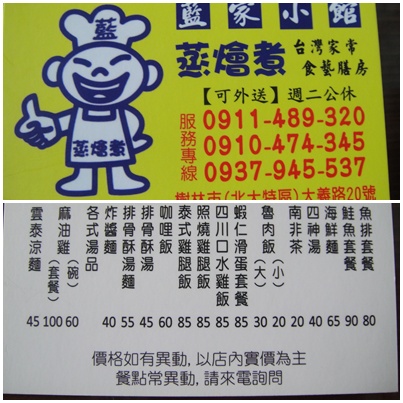 藍家小館電話:3501-9373/0911-489-320/0910-474-345/0937-945-537/