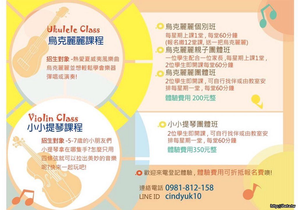 Sandiano music 暑期體驗活動要開始囉(報名課程送烏克麗麗唷)