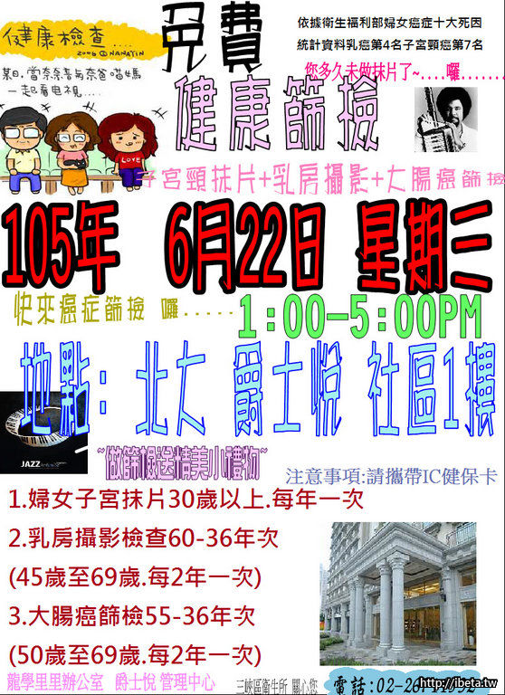 三峽衛生所6/22社區癌症篩檢服務-爵士悅社區