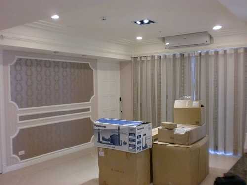 為了讓天花板看起來比較高比較寬敞, 除了小孩房以及和式房用間接照明外, 其他房間直接(從牆邊或樑或是假樑)用線板往上收.