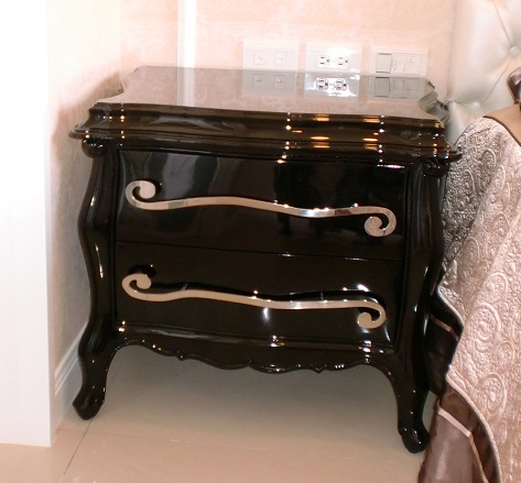 床頭櫃 左右各一 這櫃子線條比較複雜, 工廠重作第二次還是第三次才做好