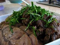 上桌前切薄片,灑點香油和香菜,就非常好吃啦