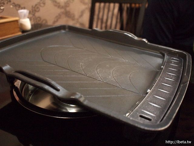 烤肉盤勢精心設計過的,一端有開口,須確定讓油脂流到凹槽內,