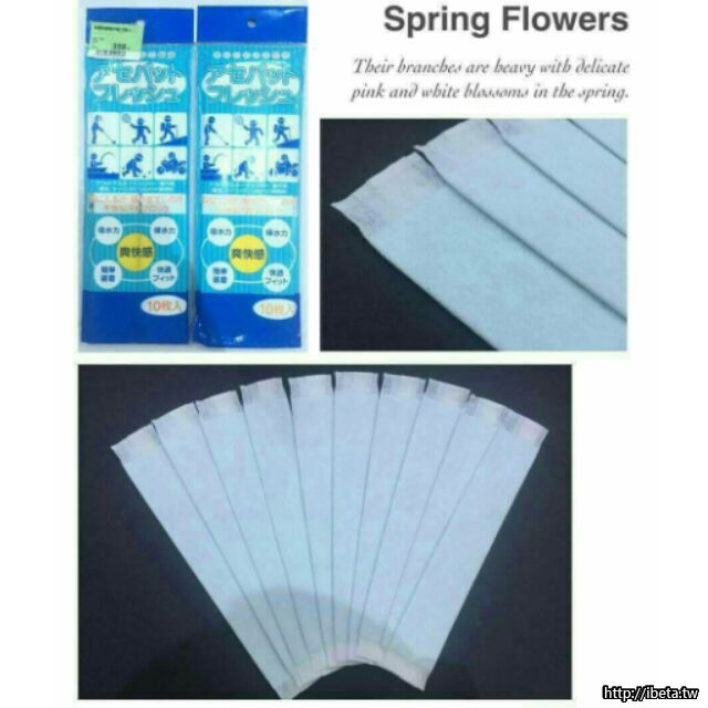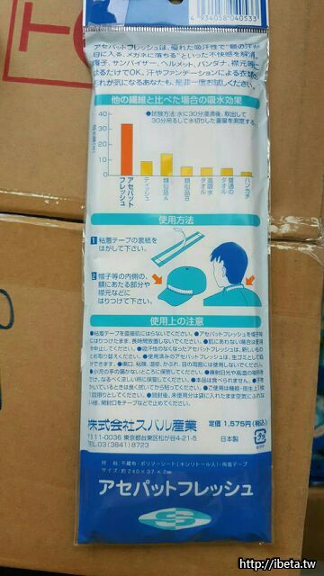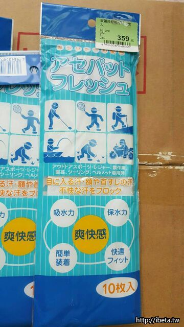 用途:貼在衣服領口、帽子內緣與皮膚接觸,把脖子上的汗水吸走,減少汗水。