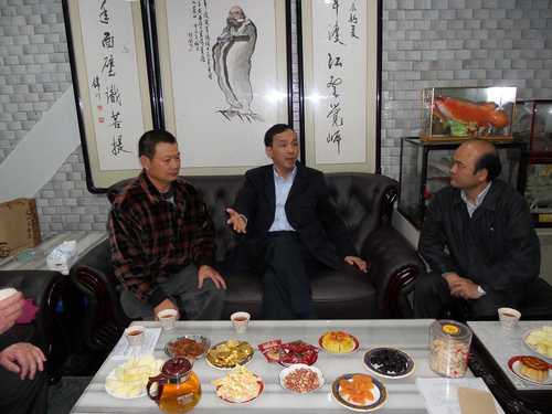 朱市長今拜訪王明麗議員,右為區長柯慶長,左為龍埔里里長陳志育