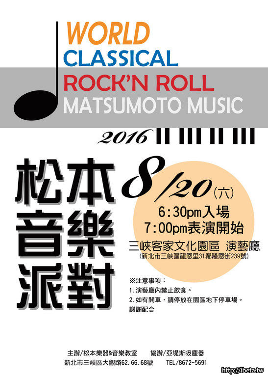 活動日期:2016/8/20(六)晚上7:00~9:00 (6:30開始入場)