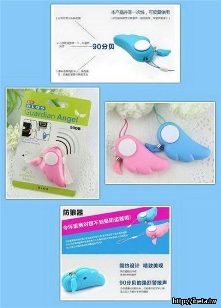 天使翅膀手機吊飾防狼警報器