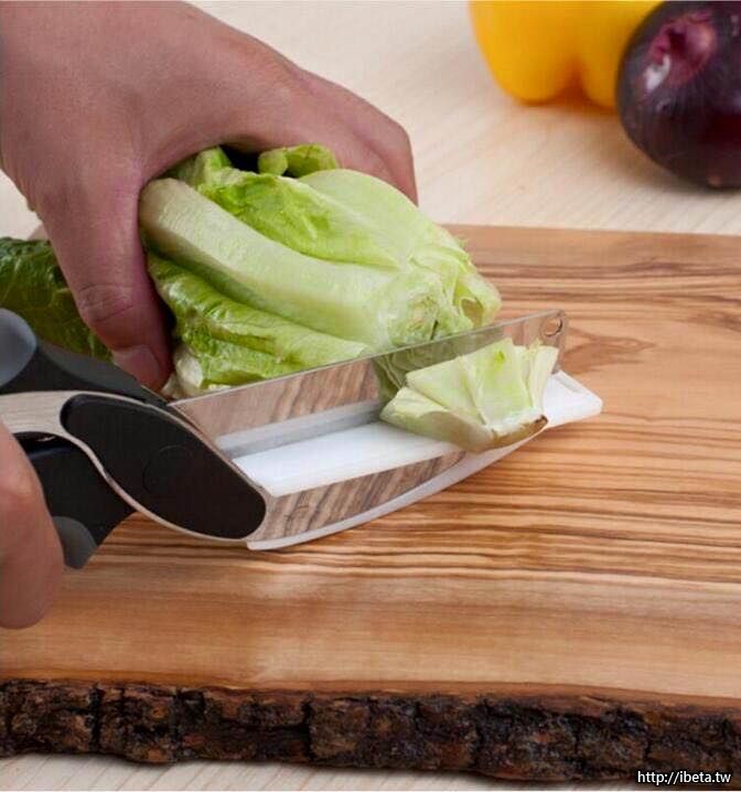 顛覆傳統理念的廚房神器!巧妙的將刀具和砧板結合在一起,無論切水果、蔬菜或是肉類等,利用槓桿原理的方