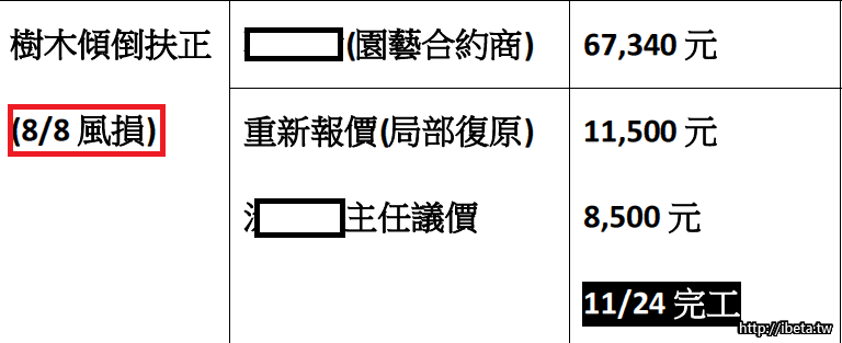 決 議:(略)將自行雇用修繕器械扶正樹木,金額以不超過3萬元為原則。