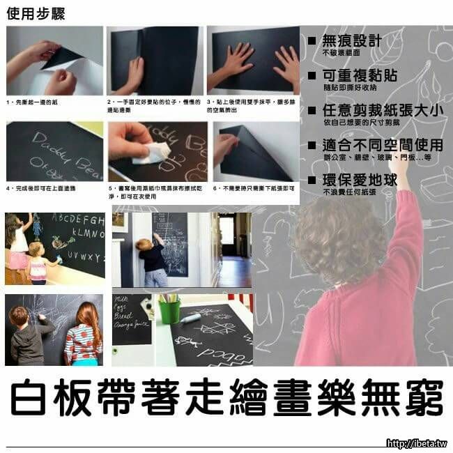 使用環保PVC材質,可以任意貼在牆面,節省空間,可以重複使用,讓孩子盡情揮灑創意,讓家人傳遞關心的話語,辦公室提醒交代事項或是替同仁打氣都好用,是培訓、開會、研討、學習...的好幫手! 一黏就可書寫繪畫好方便。
