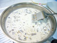 * 義大利麵煮熟撈起 放到原先這一鍋 攪拌均勻 再加入一些鮮奶油!! 完成!!