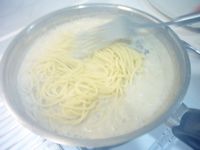 * 另一鍋水煮沸 加鹽跟橄欖油 再放入義大利麵