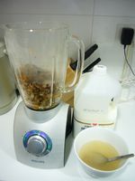 * 洋蔥跟南瓜都放入果汁機 加牛奶 高湯 打製均勻