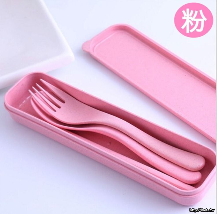 共有四色可選-米/粉/藍/綠 (外盒與餐具同色)