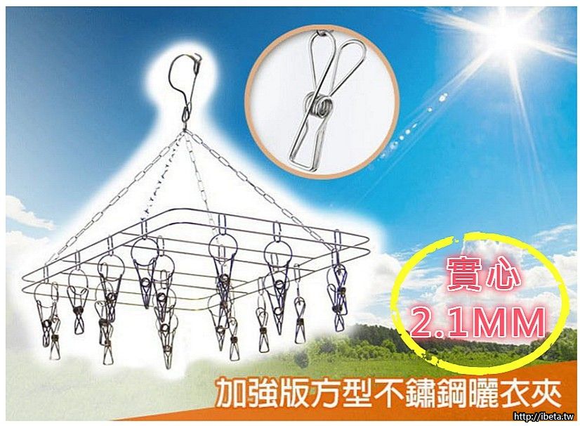【居家好幫手】#實心防風加強版方型不鏽鋼曬衣夾-20夾 團購價$109