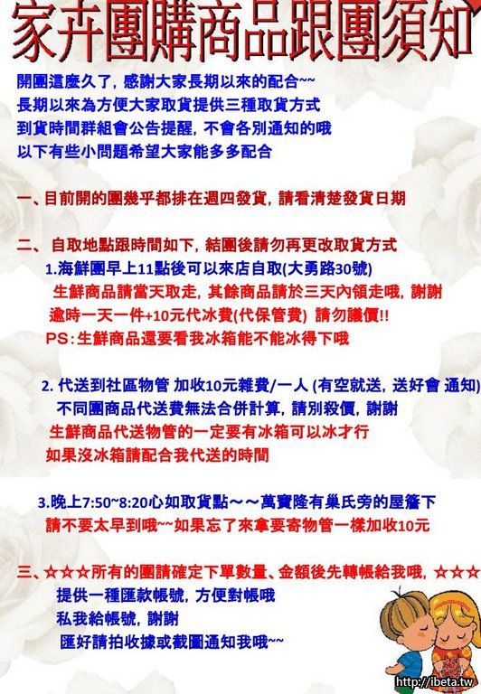 取貨方式、轉帳帳號請看照片說明