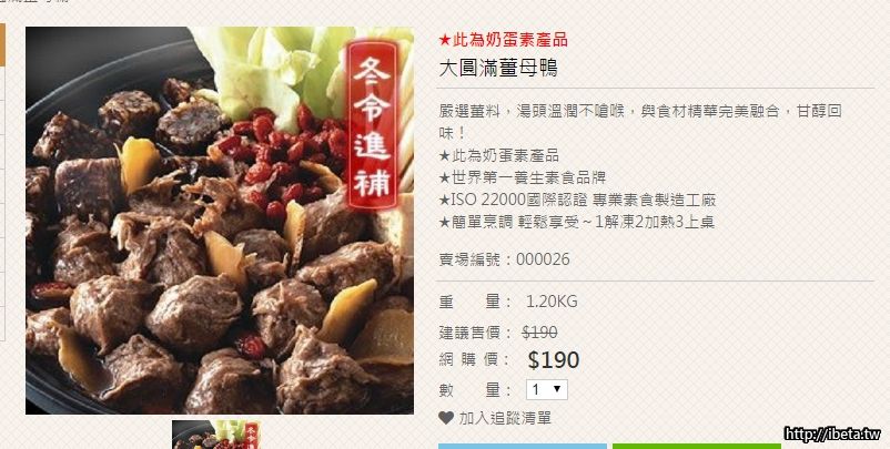 內容物: 大圓滿薑母鴨(奶蛋素)