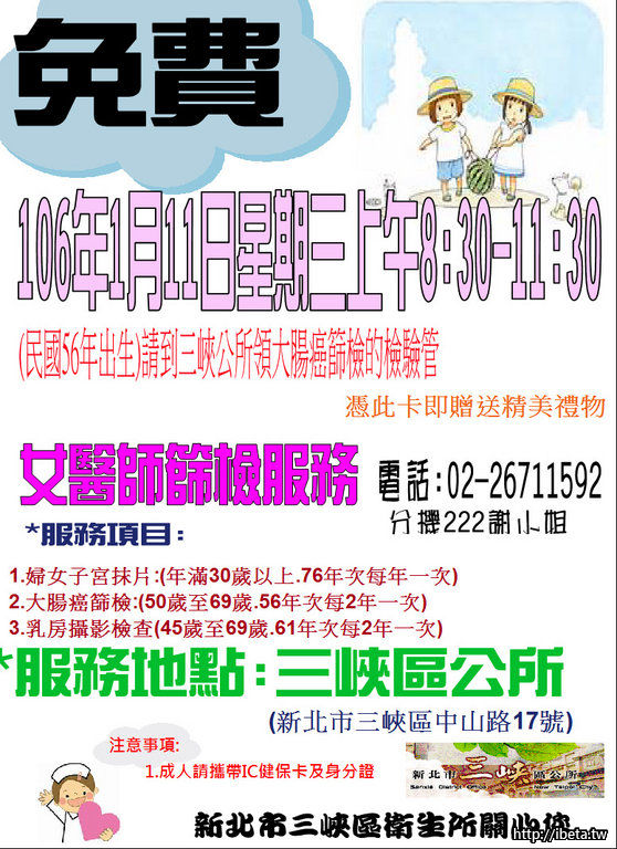 三峽衛生所1/11(三)社區癌症篩檢-區公所