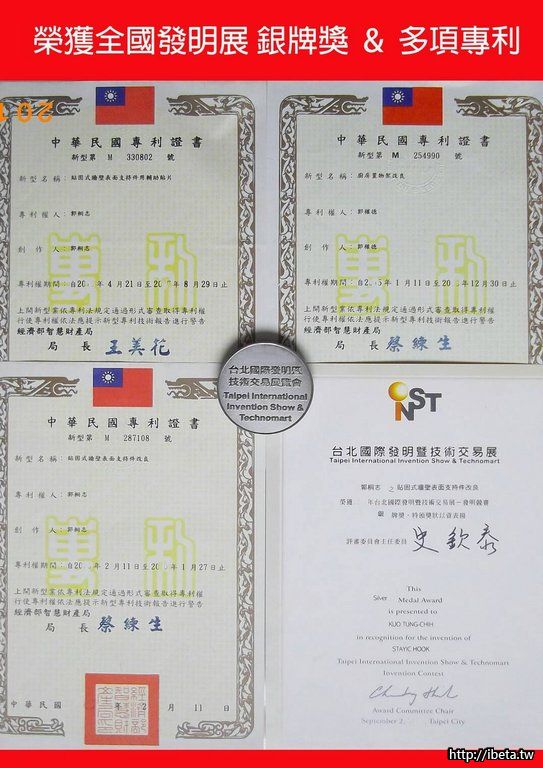 更具有專利設計以及台灣發明展獎項! 無痕膠加靜電,雙重吸附,越貼黏越緊,絕不掉落!!!