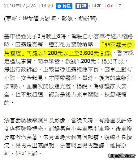 各位開車的鄉親,無霧無雨開後霧燈是會被罰錢的喔,而且跟在後面的車會很難受