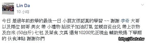 宇奇對於公益不曾間斷, 在持續關注弱勢團體的需求當中,fb發現了這個 "讓愛飛揚課輔班"。