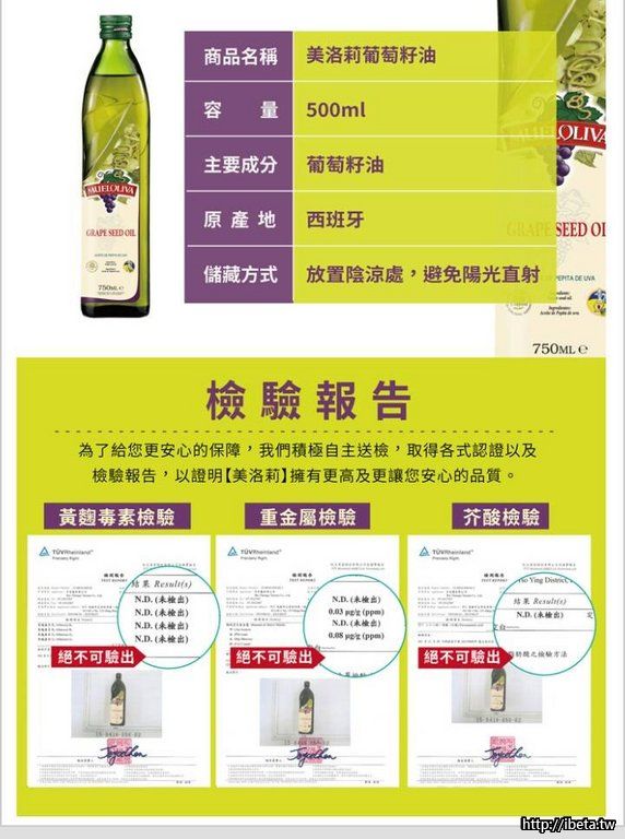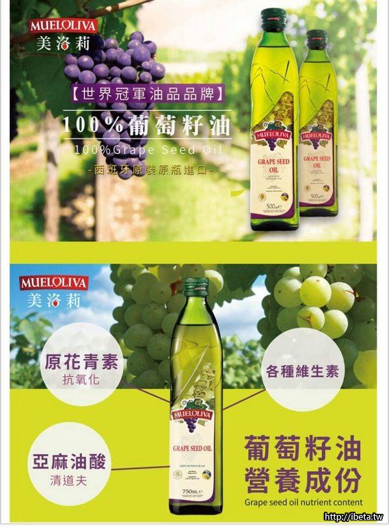 特色:葡萄籽油富含花青素、亞麻油酸、各種維生素…