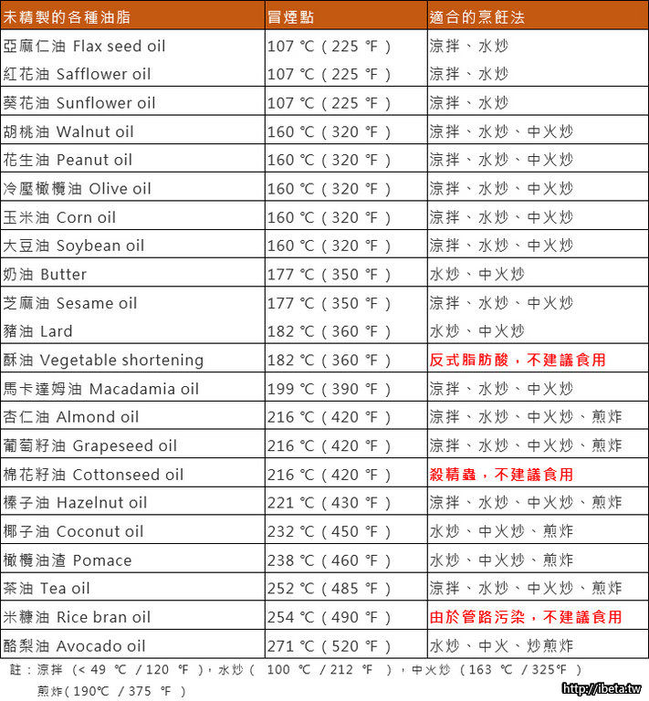 #油品穩定冒煙點約攝氏216度適合台灣人的烹調方式