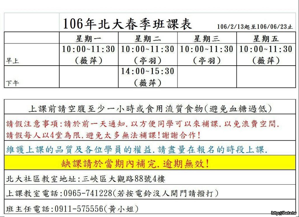 每星期二早上10:00~11:30.2/13開課.每班限8人