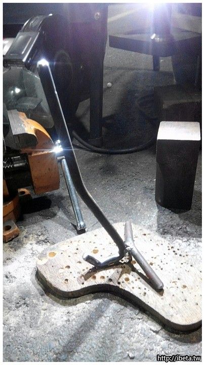 連夜,到車庫裡瞎搞,做鐵工。