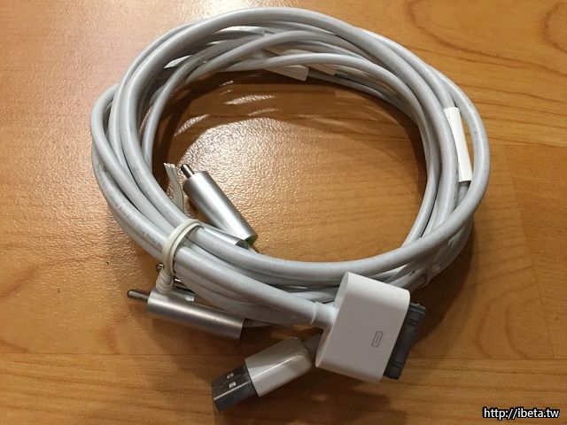這條好用的AV連接線是好幾年前在蘋果官網購入的。雖然USB接頭有裂痕(當初所有蘋果原廠線材的通病),但手感跟密合度沒有問題可正常使用。線材本身狀況良好功能正常,30 pin 接頭沒有瑕疵,色差AV端子接頭都像新的。因為手上已經沒有iPhone或iPad可以跟著用,所以便宜脫手給想在電視上看iPhone/iPad/iPod影片的人。現在官網全新價還是$1390供參考:
