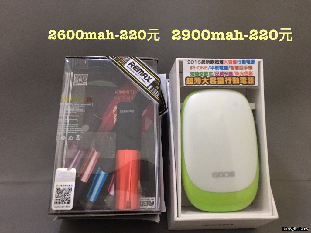 輕巧攜帶造型行動電源2600~2900MAH 200元