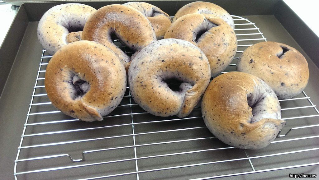 放很多藍莓後,雖然貝果口感依然~但是它的樣子好像瘀青了!!{:4_167:}