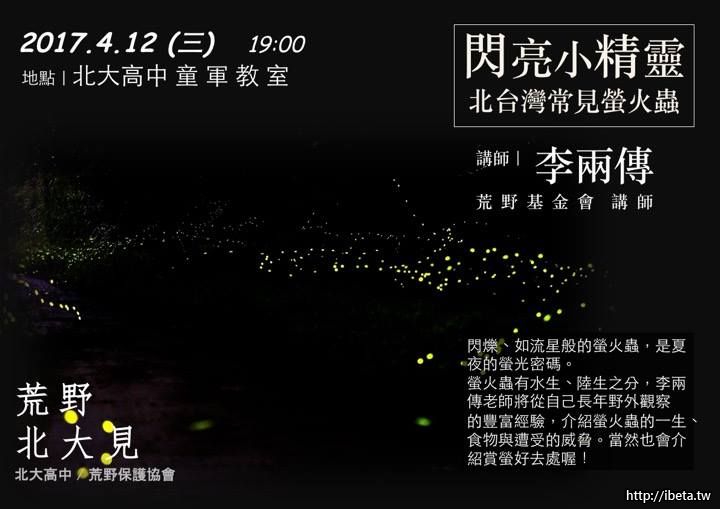 荒野北大見【閃亮小精靈-北台灣常見螢火蟲】免費講座