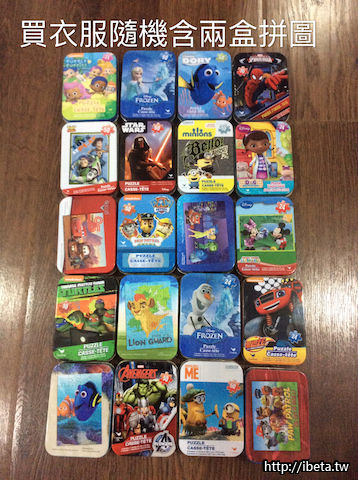 一件:110(一件衣服+隨機抽樣兩盒拼圖售價=$150)