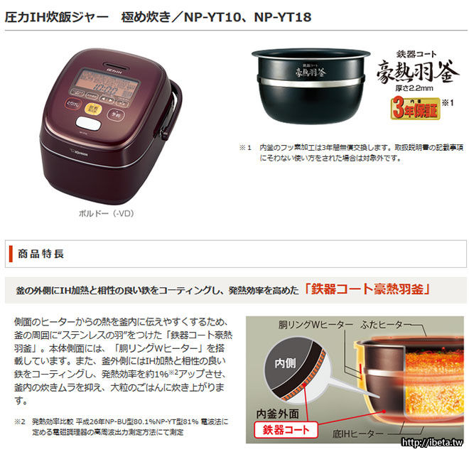 <日本原裝>日本象印 壓力IH電子鍋 NP-YT18容量1升 10人份