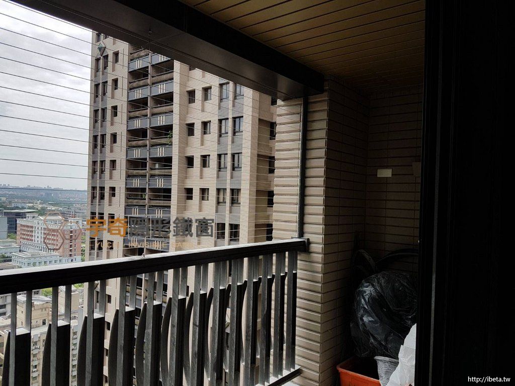 考量到管委會的要求和屋主的需要而折衷的橫式隱形鐵窗
