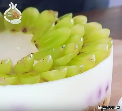 7.白葡萄切半依序擺放至蛋糕上