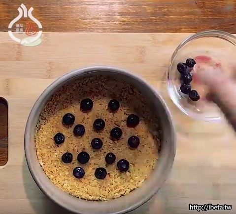 6.模具取出擺入藍莓(可隨喜好)倒入乳酪糊