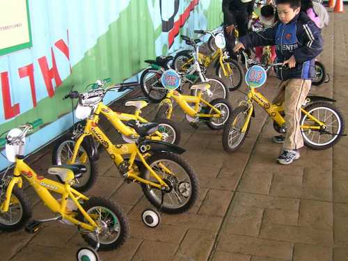 有小小朋友的四輪車,也有小朋友的兩輪自行車