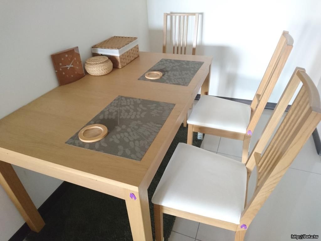 12. Ikea 可延伸餐桌與餐桌椅4支。http://www.ikea.com/tw/zh/catalog/products/90161729/ 商品頁面,主人使用一直非常小心,坐墊總是鋪著方巾,桌上總是有桌巾。非常非常新。