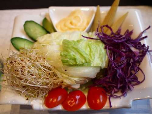 紅棗枸杞養生茶(不知道還加了什麼), 沙拉, 前菜(今天吃到泡菜) ,