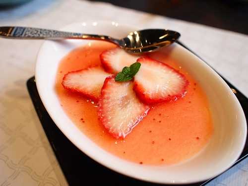 甜點(老闆娘說還不確定以後要不要固定有, 今天吃到草莓奶酪, 上頭有新鮮草莓 @@")