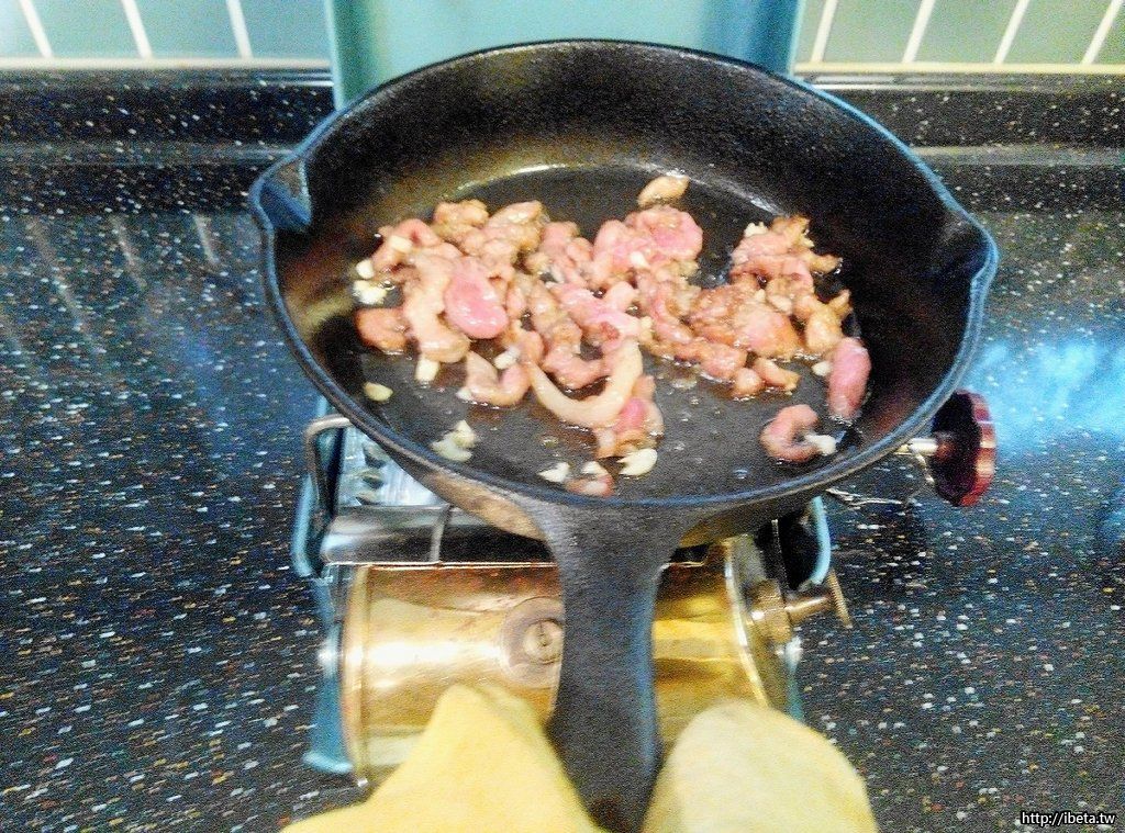 肉絲七八分熟時,撥置鍋邊(亦可起鍋備用,但我偏好一鍋式)。