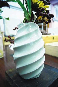 石門水庫淤泥研發製成的泥漿釉,除可應用於陶杯外,也設計成花瓶。