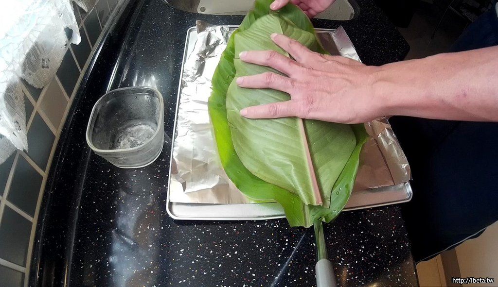 再覆上蕉葉。