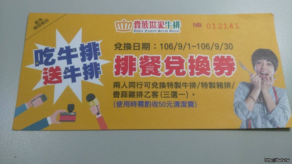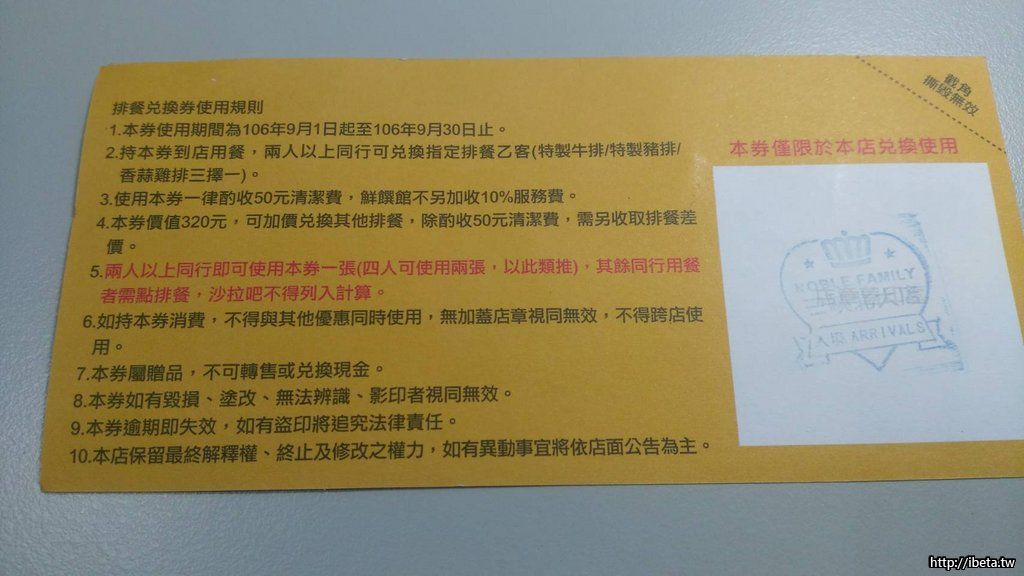貴族世家排餐兌換券