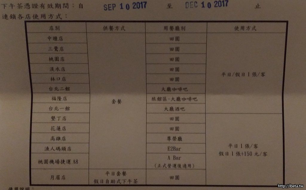 原則上適用於福容大飯店連鎖系列,但是有些店已經不提供下午茶,像三鶯店,就已經沒有提供下午茶了.