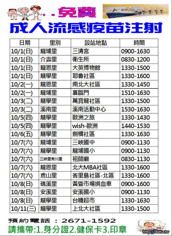 請大家告訴大家~50歲以上可以打公費流感疫苗!!衛生所相關施打地方如圖。