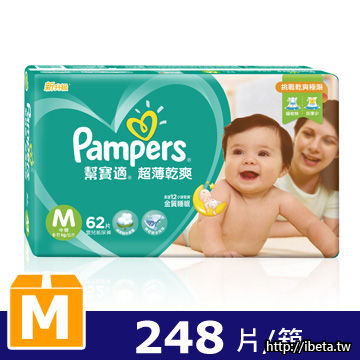 (全新)(綠)幫寶適 超薄乾爽 嬰兒紙尿褲/尿布 (M) 62片 x4包/ 箱