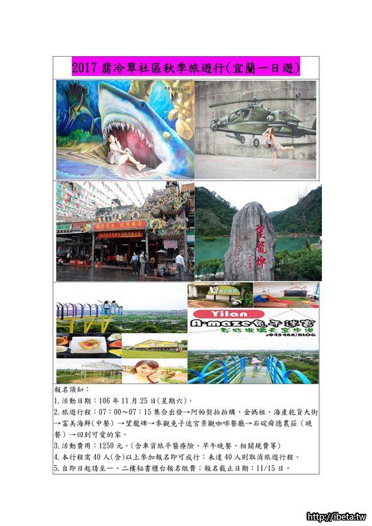 附檔為公告-2017翡冷翠社區秋季旅遊行